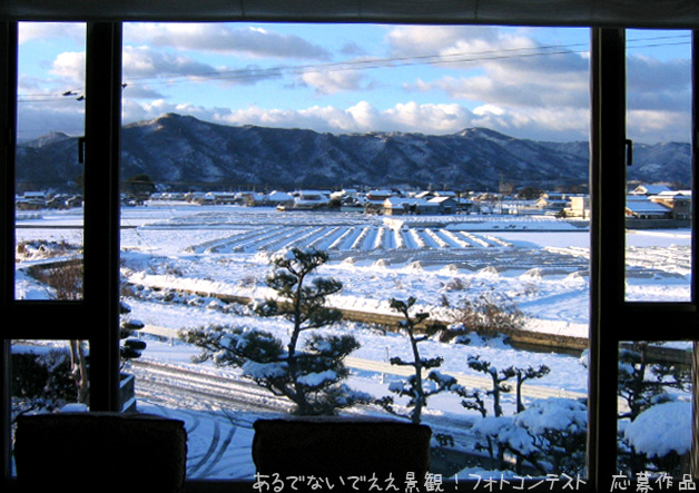 作品名 :ギンセカイ 撮影場所 :名西郡石井町 選んだ理由:窓一面に拡がる銀世界との滅多にない出会い 撮影者 : 冬/撮影年月:2005年12月 (w156-62)